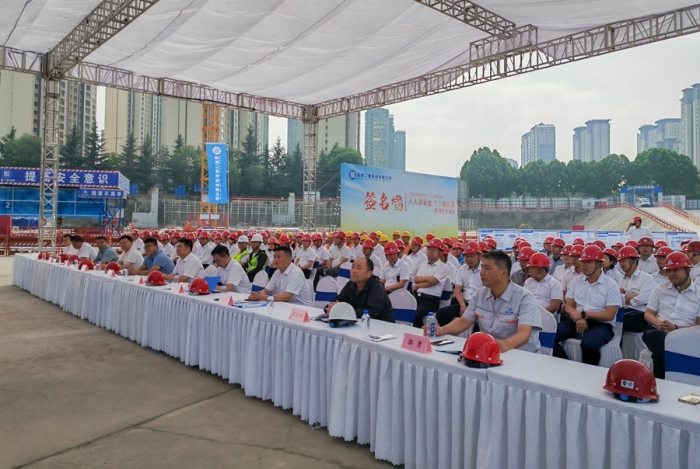 集團(tuán)公司黨委副書(shū)記、總經(jīng)理?xiàng)罱剑笨偨?jīng)理、總會(huì)計(jì)師嚴(yán)海軍,副總經(jīng)理申小龍出席儀式。集團(tuán)公司總部相關(guān)部門(mén),寶雞片區(qū)各項(xiàng)目部負(fù)責(zé)人、專(zhuān)職安全管理人員及現(xiàn)場(chǎng)施工人員共計(jì)150余人參加了本次活動(dòng),儀式由副總工程師、工程管理部經(jīng)理郭為群主持。